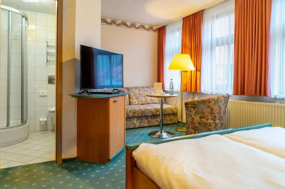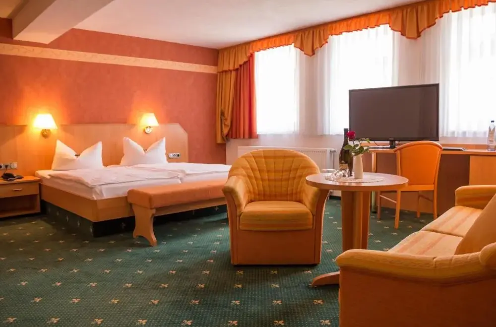 Stolberger Hof is a 4-star family-run hotel located in Stolberg (Harz), Germany, dating back to the 13th century. Situated on the Medieval market square, this timber-framed establishment offers individually furnished rooms equipped with TV and mini-bar, providing views of the vibrant marketplace or serene courtyard. Guests can enjoy regional specialties, local game, and international cuisine at the on-site restaurant. The hotel serves as an excellent base for exploring the Harz Mountains. Wellness facilities include an indoor swimming pool, whirlpool, three saunas, and a relaxation area. Complimentary parking is available subject to availability. Located within walking distance of Stolberg Castle and Alte Münze, the hotel also features free WiFi, non-smoking rooms, and exceptional breakfast options.